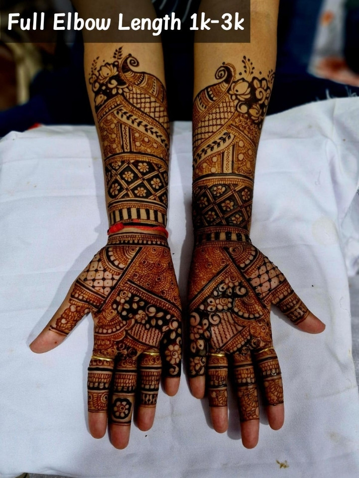 Certified professional Mehndi Artist with 4 years of experience in creating beautiful designs from basic to bridal. I specialize in neat, detailed, and long-lasting mehndi using safe, skin-friendly cones. My designs blend tradition and modern elegance to make every occasion extra special. ?✨